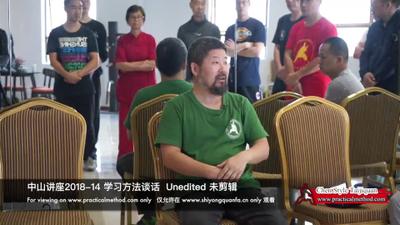 他高兴了过来踢你两脚。就是这种18 岁碰到这个情况。你这种恐惧感。一旦得罪了人家,人不教了你怎么办。到哪去再找个老师。所以就是小心翼翼的不敢说 不敢道。用这个方法,并不是人家逼着你。但就是这个社会环境。所以养成了一个很害怕。这么个心情。只有在这个心情 你才能学着。但是怕厉害了,吓得不去了你学不着了。但是你不在乎。你去老好像是拍拍肩膀一块儿喝个酒这样的话你学 不着。