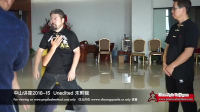 你看,肘,肘走了一点吧。他就开始走这个了。 这个地方是不是这么样转了。如果有横的。他就是这样了。这就没有了。为什么,一这样的话。一放手。他就倒了。呵 。唉。你只要是有这个它能倒。这你看。唉,他这么走。所以全身到最后练得,胯不开。所有这些事都办不到。换电池 啊。哦好的。