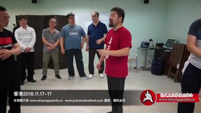 学员广东话:收到里边了。就用肘去翻过来。这个手了,手这个地方。对方那个(英文)。中间有个(英文)。对方对准。前边还是一样的。都是对准。全都还在(英文)