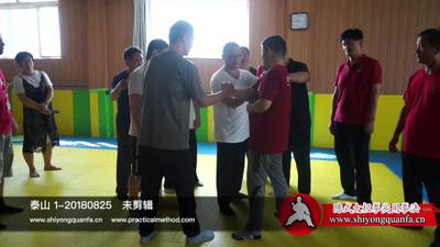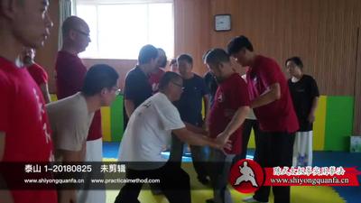师父陈中华:你这卡住不要动它,就这样不要动它,只转这,看,转着劲大了,一转这,连接了上和下,这就是从这个手到交这么长,一动肩,他就这么一点不管用,这个地方(胯)是个最大的地方,你明白吗?所以你练的时候不要动它,他是从这里出来的,你试一试,这个劲大了(肩肘)会合死了,不动了,走它,唉,还是走了,一点也不动,只是走它。还是动了,定住不动走他,定住了,不要动,定住了,定住了,定住不要动!