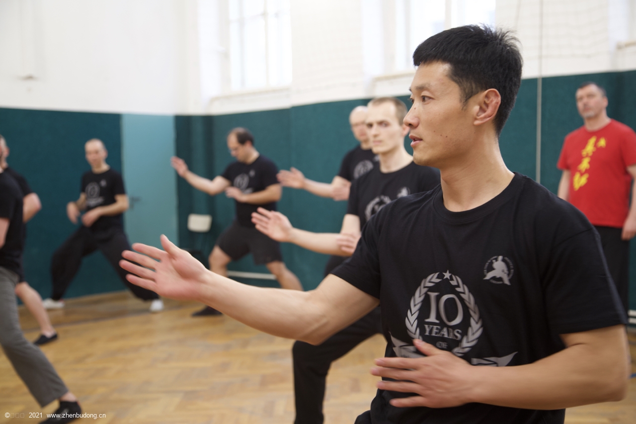 第一天的夜课,来了13个人。我们讲了一些基本功,练习了收肘出手,然后由陈旭和孙洋和学员们试了下手。目的是让学员们体会一下不同教练的推手感受。
