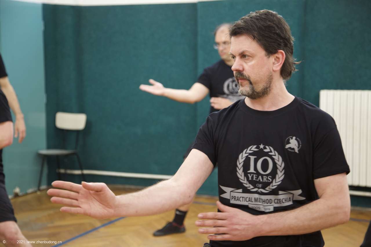 布拉格实用拳法讲座夜课2019年四月8日。由于日程的原因今年布拉格的讲座之能安排在周2-3,这样能参加讲座的人就会减少,基本变成了日常课程。尽管如此,还是有外地学员赶来参加,其中有德国柏林的斯文和卡洛塔,波兰的大敏。