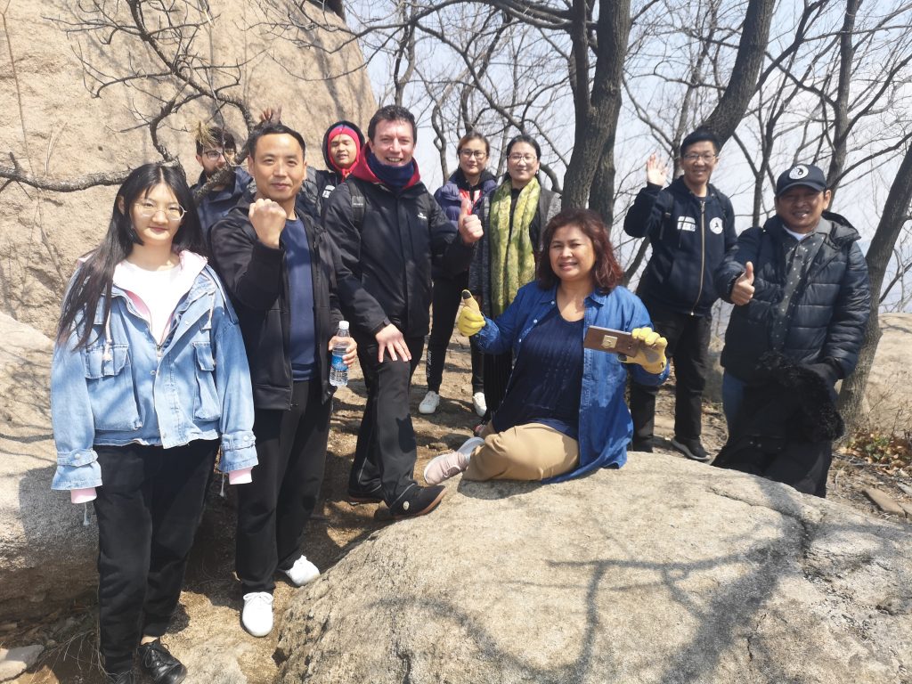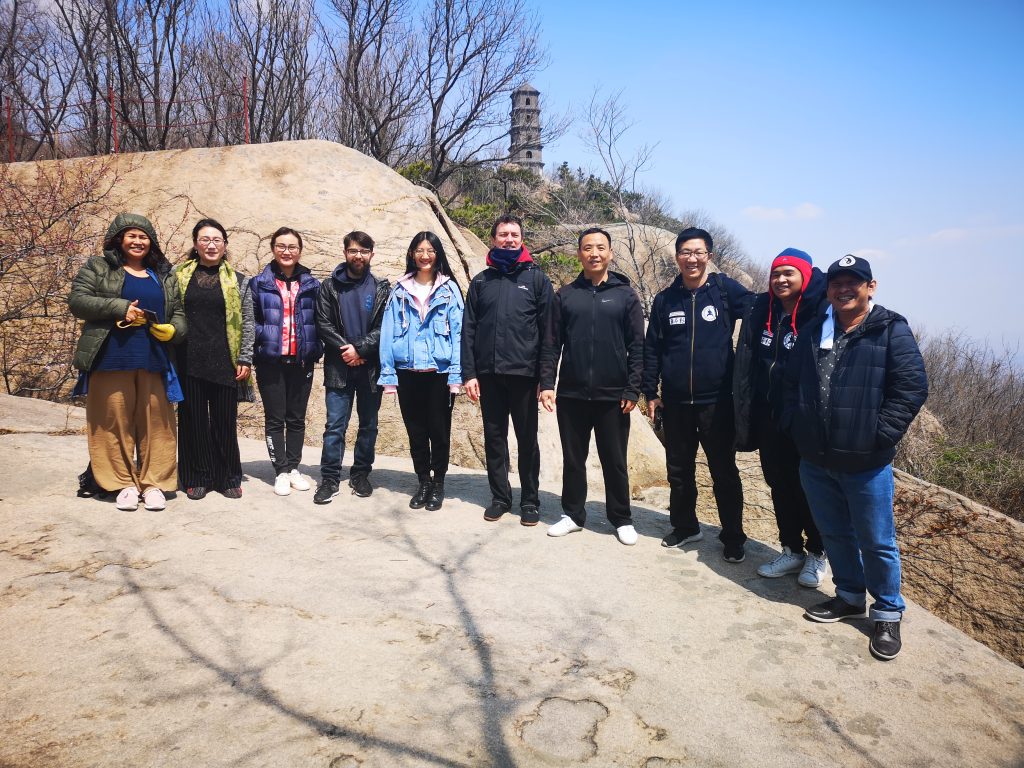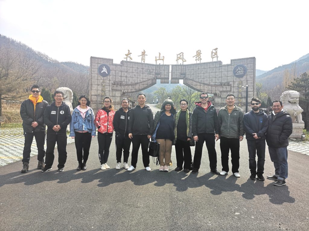 4月10日,来自印尼巴厘岛的Made Keshava一家三口和澳大利亚悉尼的大卫,在国际部吉姆斯,庞朝立教练,赵青云教练及几位学员的陪同下参观了大青山风景区,体会青山太极的文化。