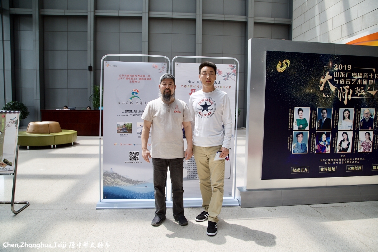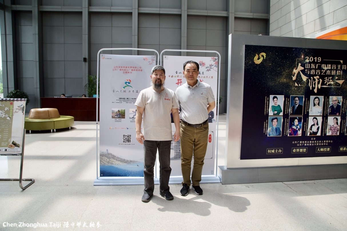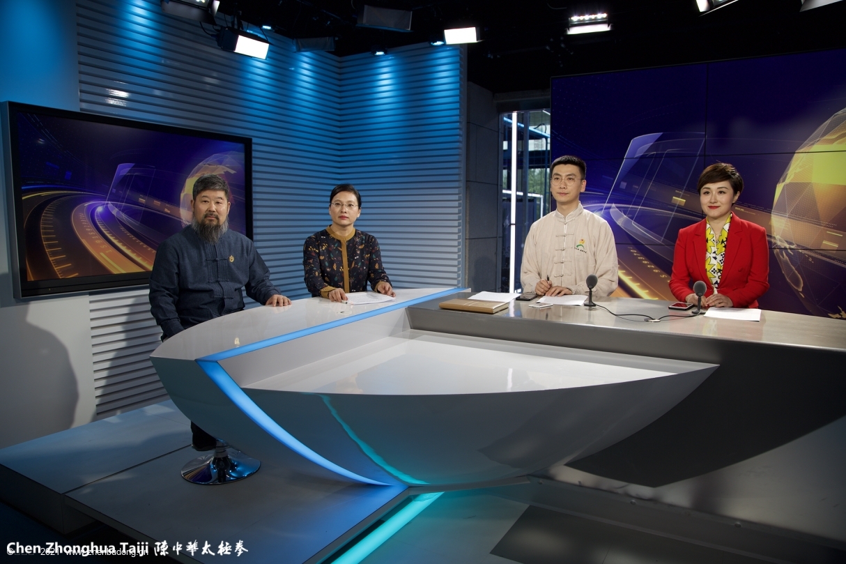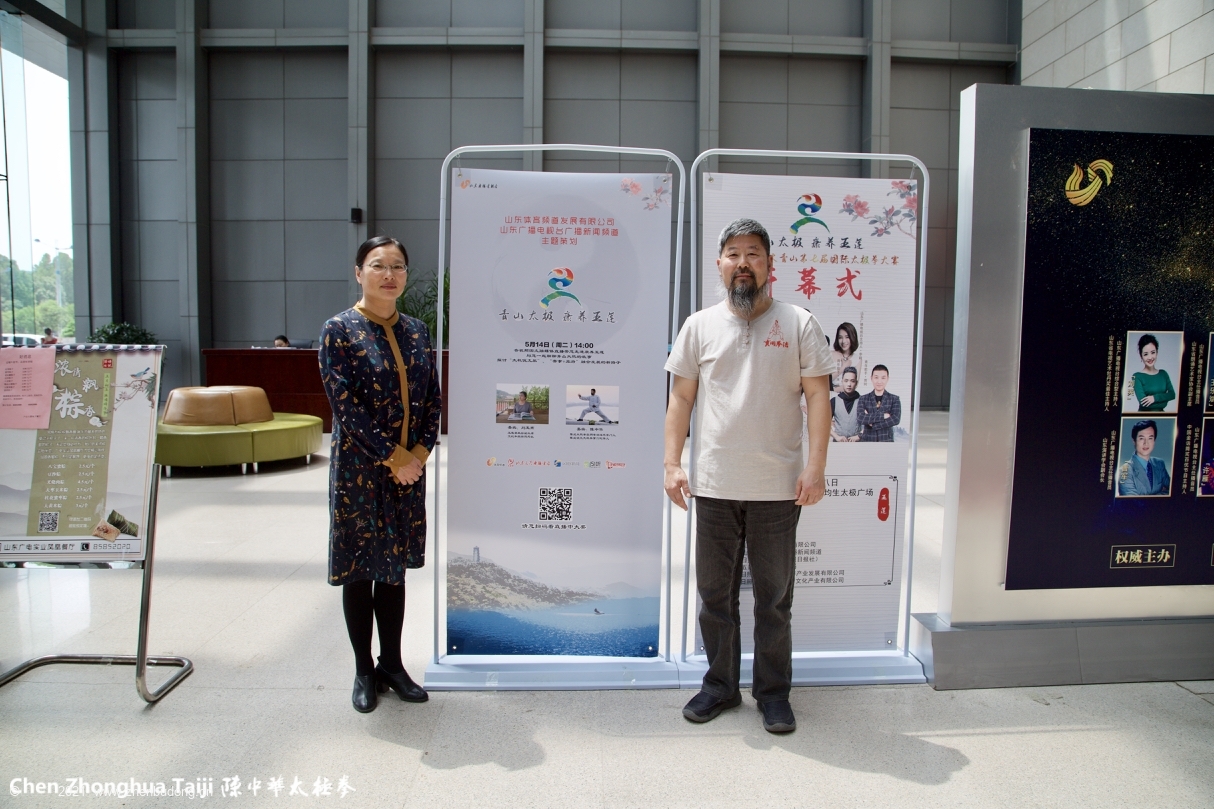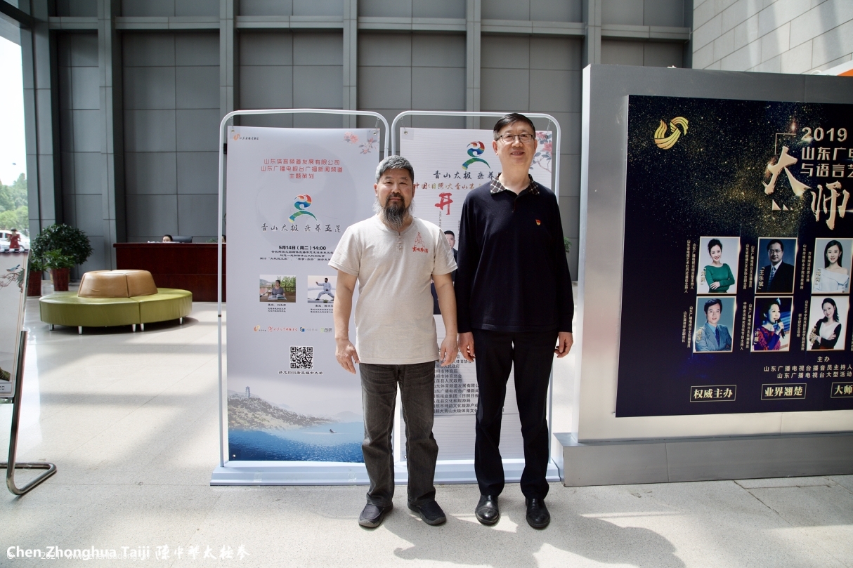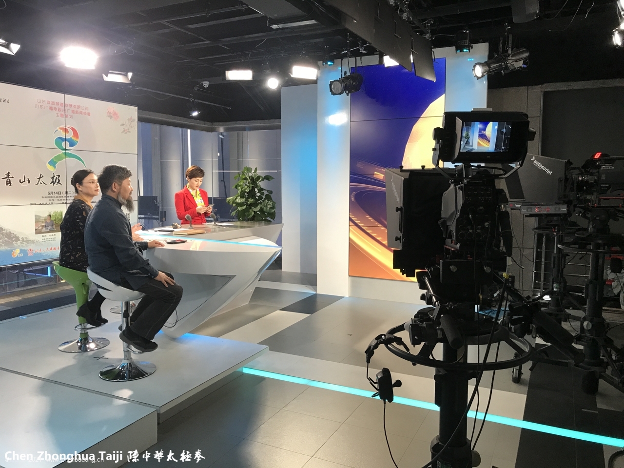 2019年5月14日五莲县政协副主席刘玉燕和陈中华老师在大青山总教练陈旭助理教练王凯、国际部长 James Strider (吉姆)和德国学生莉莉的陪同下就即将召开的第七届大青山国际太极拳大赛做客山东台。