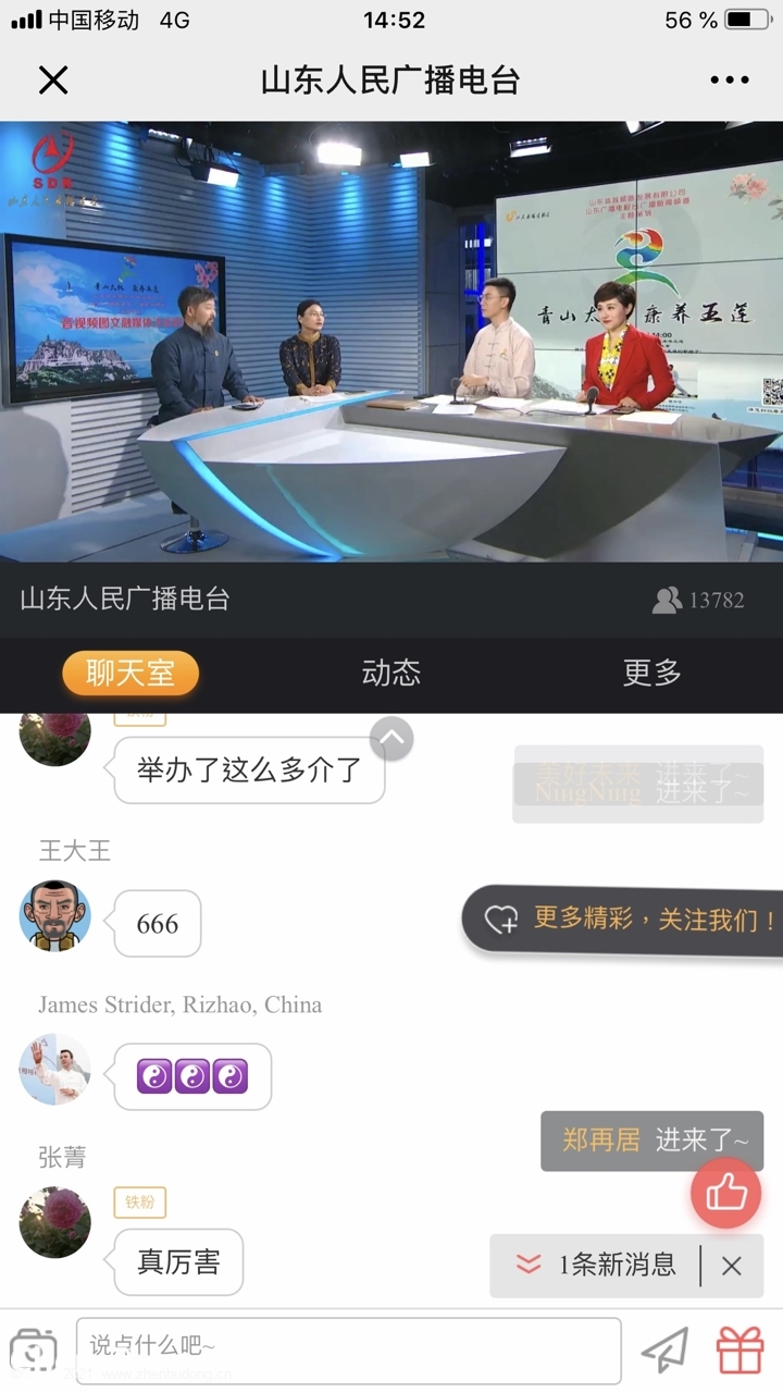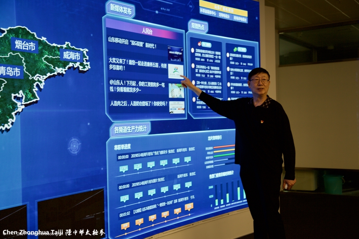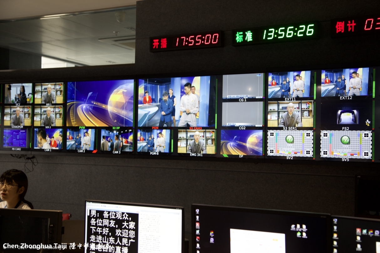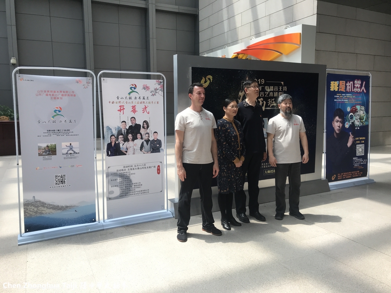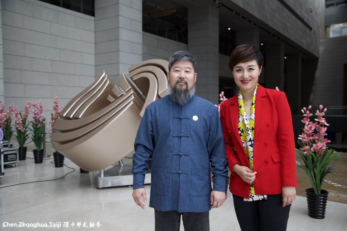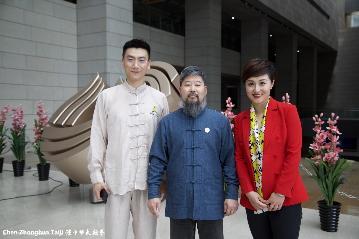 2019年5月14日五莲县政协副主席刘玉燕和陈中华老师在大青山总教练陈旭助理教练王凯、国际部长 James Strider (吉姆)和德国学生莉莉的陪同下就即将召开的第七届大青山国际太极拳大赛做客山东台。