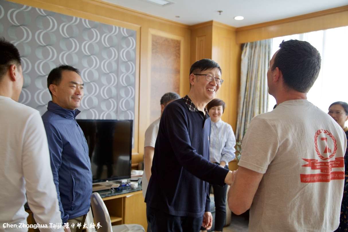 陈中华老师讲:前两届太极大赛都是由他个人举办的。自从2013年起,由当地政府主办,今年是第七届大青山国际太极拳大赛。每年进入五月份,美丽的大青山陆续迎来世界各地40多个国家和地区的太极爱好者,他们聚集在这片太极圣地上,学习太极,了解中国文化。太极文化历史悠久,博大精深,是中华文化的最重要载之一,他既现出中华民族的审美观、价值观和世界观,也传承了中华民族的风骨和气质,深受海外华侨华人的喜爱,是凝聚侨心、弘扬中华文化的重要纽带。