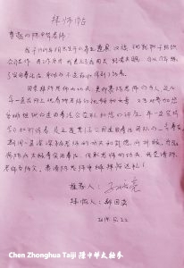 因崇拜陈老师的功夫,更仰慕陈老师的为人,近几年一直在网上观看陈老师的视频跟讲座。并一直坚持学习和训练着,于期间一直深深被老师的功夫和武德所折服。为弘扬陈氏太极拳法,传承老师的功夫,我恳请拜陈老师为师父。恭请陈老师安排拜帖达礼!