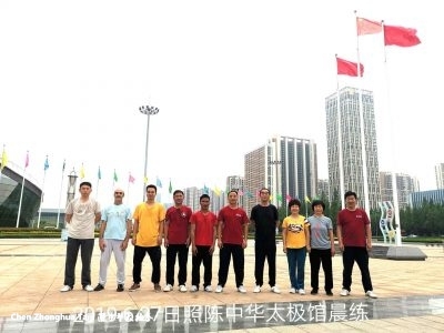 庞朝立教练带领大家上晨课。肩肘胯三大关节尤为重要,先练开,让他们可以独立转起来,再组合运动。