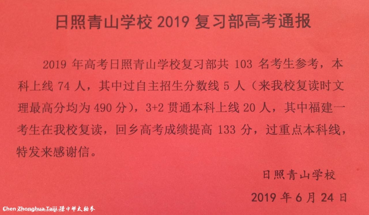 日照青山学校2019复习部高考通报 发表于 2019年7月1日 由 陈中华官网通讯员 更多帖子青山学校的学习改变孩子的人生 (强烈推荐)青山学校风光2020.04.22 (强烈推荐)日照青山学校2020年高考成绩 (强烈推荐)五莲县高考补习学校2020年招生简章 (强烈推荐)