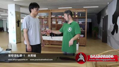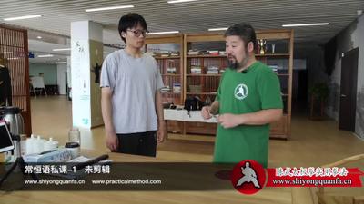 所以那,刚才说这个实,是90度的,自然实。在生活中,它一直在变化。就是你跟人推手中,你来试,你推吧,随便推,它一直是在变化的,但是,你再推你试,你试,你不管怎么变化,我给你找那个,懂吗?我给你找那个实,就是你推的时候,你晃悠的推,你试,是这样的吧,所以你这个角度不对,你再来,你看,对上了。就是,一定是,在你这个地方,我再讲一遍是什么意思。