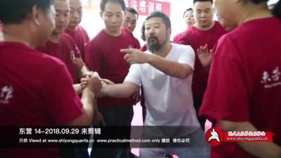 陈老师:使点劲,嗯哼,是不到这儿来?你看这儿,你们平常你看手动了吧,现在你看,还动吗?这个时候走它,是不走的背后啊。(奥。)劲不在这儿了。