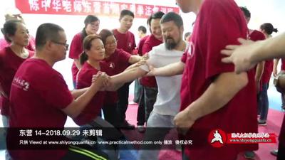 陈老师:它就是调过来。你现在明白了吧?就你看一搭手,我再大的劲儿,我不是拉不动你。而是,你抓着我拉着你。只要是你感觉到这儿能吃上劲儿,我的劲儿没转过来,但是我一转这个在你背上,我们的动作就是把它调过来。