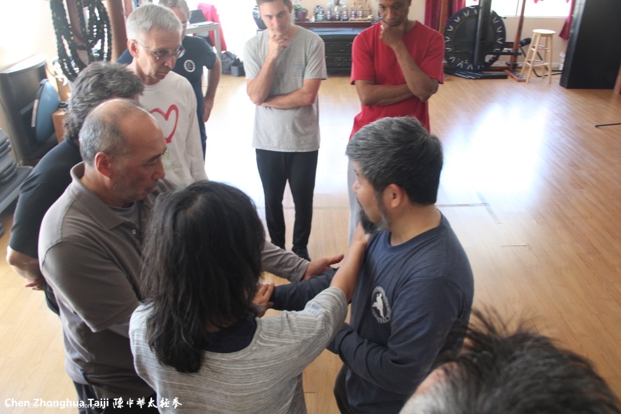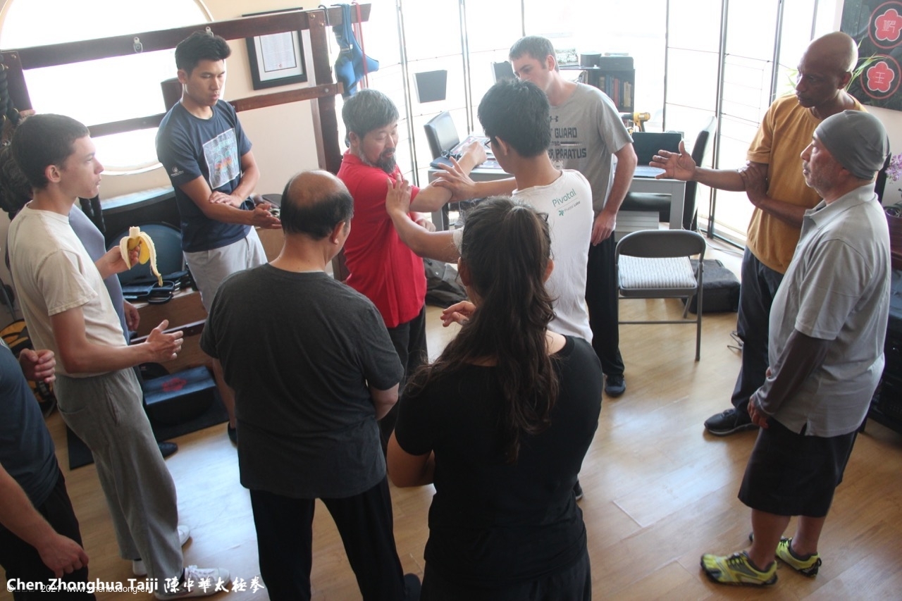 Add speed – do it 5 times fast. Add power – have someone hold onto your kua from the rear. Add stepping – connect it to your elbow and don’t let the elbow move.- Learning – have to make ideas based on physical reality, not on ideas.