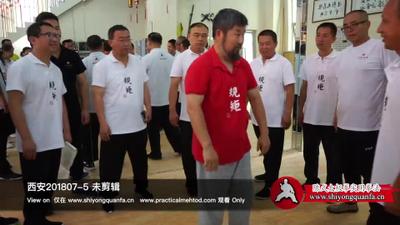 你看这些地方他都走了外形了。现在你看这个肘,是不是已经过去了。你试。从里面走过去了。绝对不能走外型。所以这个相当难。你知道难在什么么。控制不住他。唉。并不是使不上劲儿。我们不需要用很多劲儿。就是控制住外形。我死活你让他变。我们呢。他总是要变。你一碰我你试。你看。他总是想变。你看就像动它一下。我碰这吧。