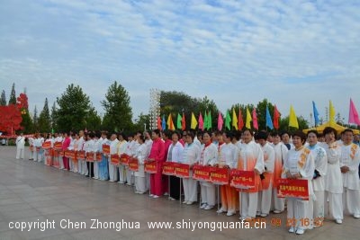 在比赛中,他们动作整齐划一、刚柔并济,显时气势充沛,隐时烟消云散,一动一静、一开一合,上下相随,挥洒自如!三个队都表现出了极高的水准,博得现场观众的阵阵热烈掌声。