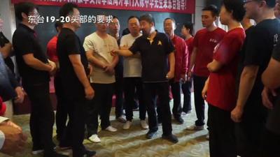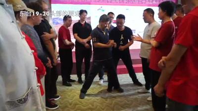 —-明白吧,你看,你伸手,没有这么抓人的,他一定是这么抓,看出来节奏了吧,没看出来,你看,上手的时候,脚是同时上的。你是一个,你是咚~,我是咚咚,是吧,你看,咚咚。呃,这时候,你看,我又打了一个的时候,打的几啊,你看,我靠上之后,我打的时候,你试,全部打的,(上下一起),这个你们,就不和你说,你看不见,你不知道是这样,是打的节奏嘛。