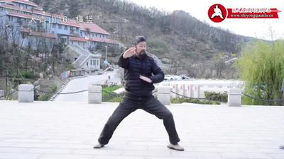 动作里面都是,单边往下一个动作开始。身体定住不动,通过肘把力收到丹田,再通过转中轴,把力转到了手。收肘,蹬脚上步,把力收到丹田、转中轴、出手。手上一定不能有横力。
