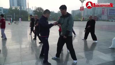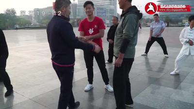 陈老师)没有关系!你推着我,你试!你看这两个位置;你推!你看他劲很大吧!这个时候,一分开“阴阳”!他哪有劲呀!