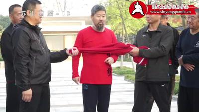 你来摸一摸他是怎么样,过去你可能以为都是这样的。或者说怎么样。就是收肘这个事儿,你得摸一摸。他怎么回事儿。说道收肘。你们到目前为止,你们自己的认识。知道收肘是什么么?嗯?知道么。收肘啊。不是指的这个东西。啊。谁过来试一试。你过来吧。嗯。再来一个。来一个。你先别动站这。唉。你站这。