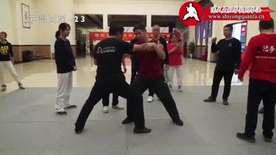 陈旭教练:这个点。那个点的力换到这个点上。没换过来。这个点一抓,这个点就可以松了。唉好。你那个地方别硬顶上,硬顶上不来啊。真正用的时候硬顶上不来的。