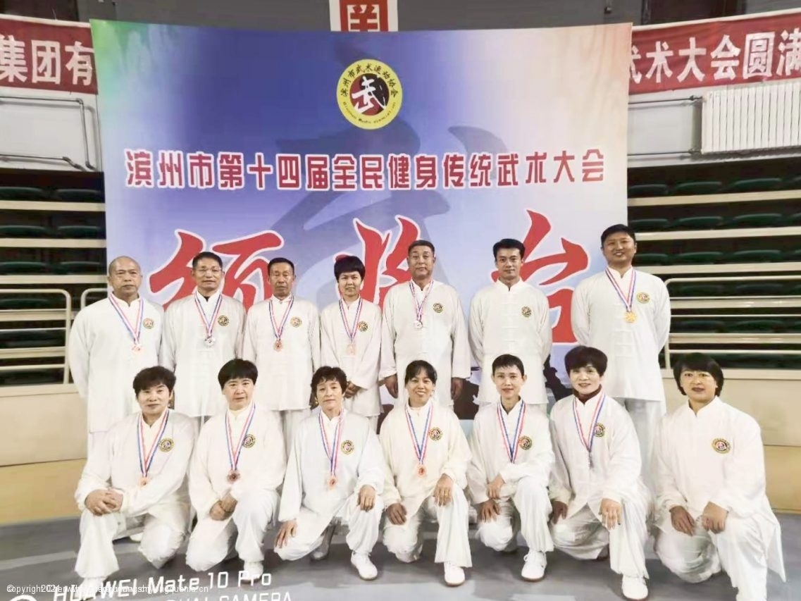 初炎强说赛场上大青山分支:山东太极推手俱乐有两支团队24人展演了太极节目,动静结合,刚柔并济,为在场观众展现了实用拳法的精彩。此次比赛章显了博兴实用拳法的风彩,体现了博兴实用拳法团队对太极拳的热爰。山东太极推手俱乐部荣誉获得了最佳组织奖、道德风尚奖、集体奖和多个个人奖项。借这个比赛平台让更多的武术爱好者展现了自己的真实功夫,为滨州武协举办这场武林盛宴而点赞!