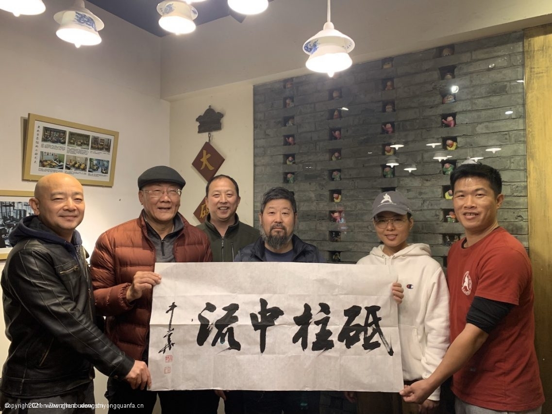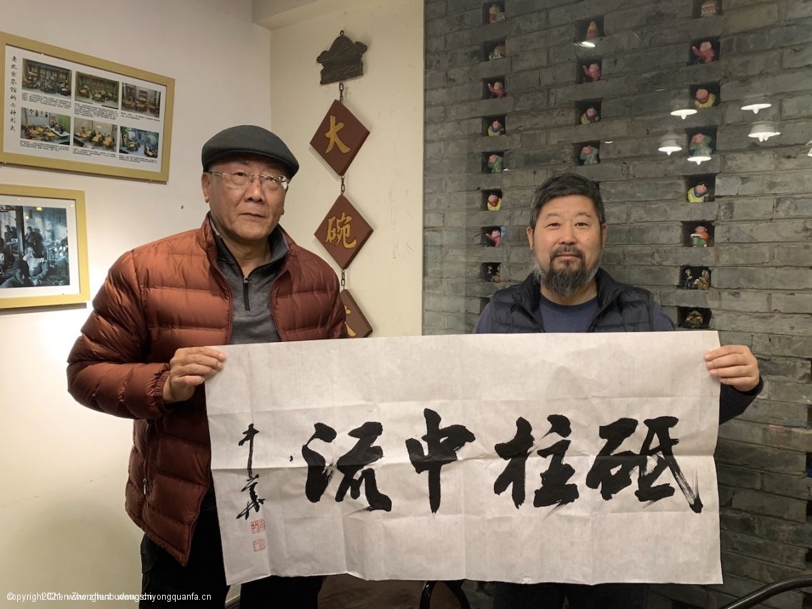 2019年11月12日途径北京前往巴厘岛讲座,孙中华师兄送书法【砥柱中流】。